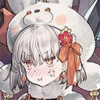 Description: Blonde girl with an oni mask